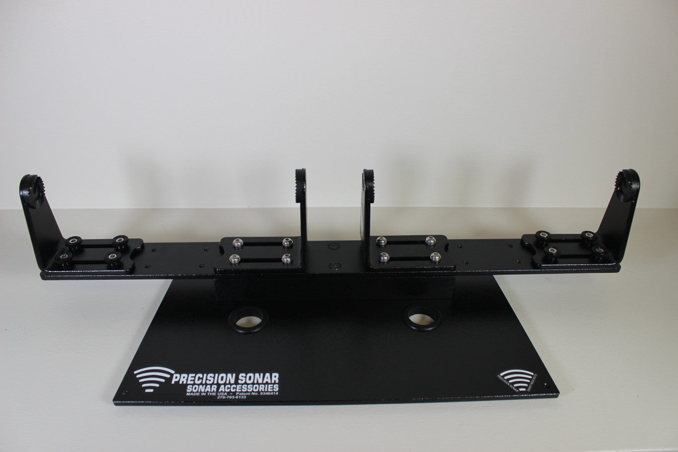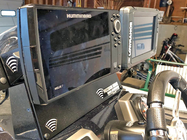 A Dual Ranger 175/185 Console Mounting System Plate that comes with a V-shaped spreader bar, spacer block, our Patented Smart Brackets and your choice of discs to match those units. The plate itself is quarter inch aluminum and built to be strong and stable for mounting to your boat.