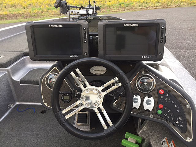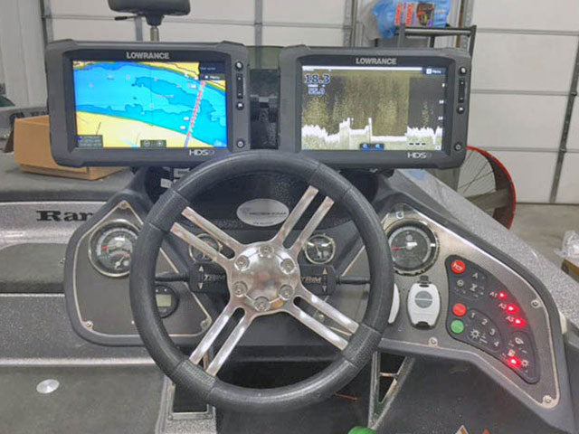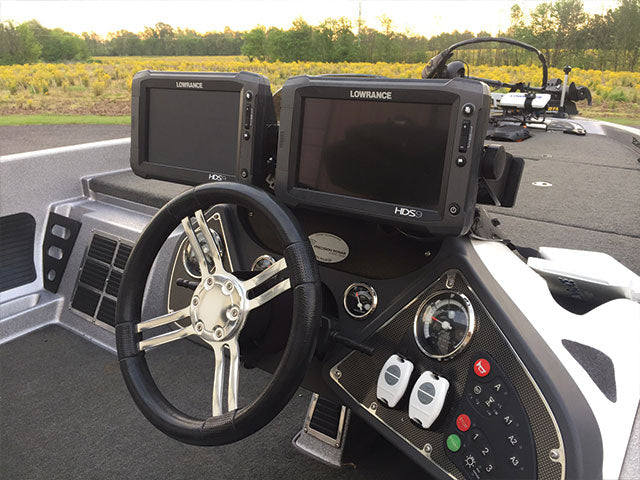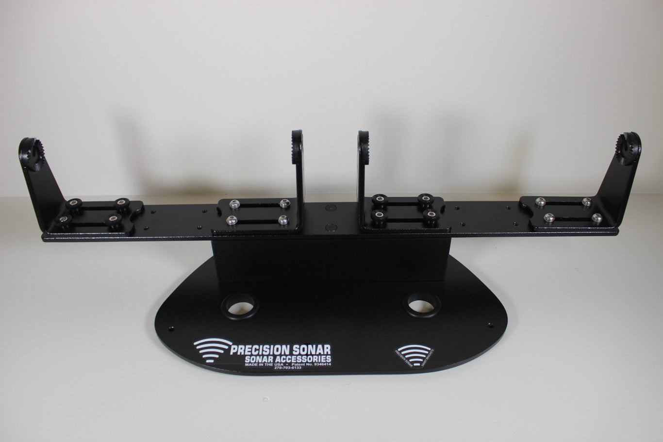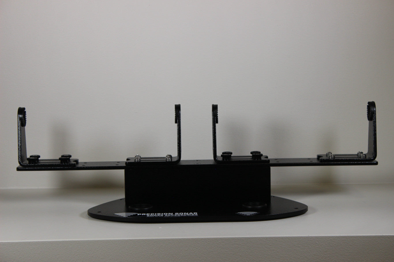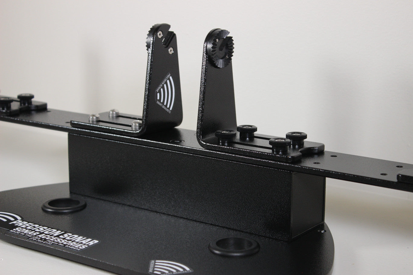 A Dual Ranger Z Series Console Mounting System Plate that comes with a V-shaped spreader bar, spacer block, our Patented Smart Brackets and your choice of discs to match those units. The plate itself is quarter inch aluminum and built to be strong and stable for mounting to your boat.