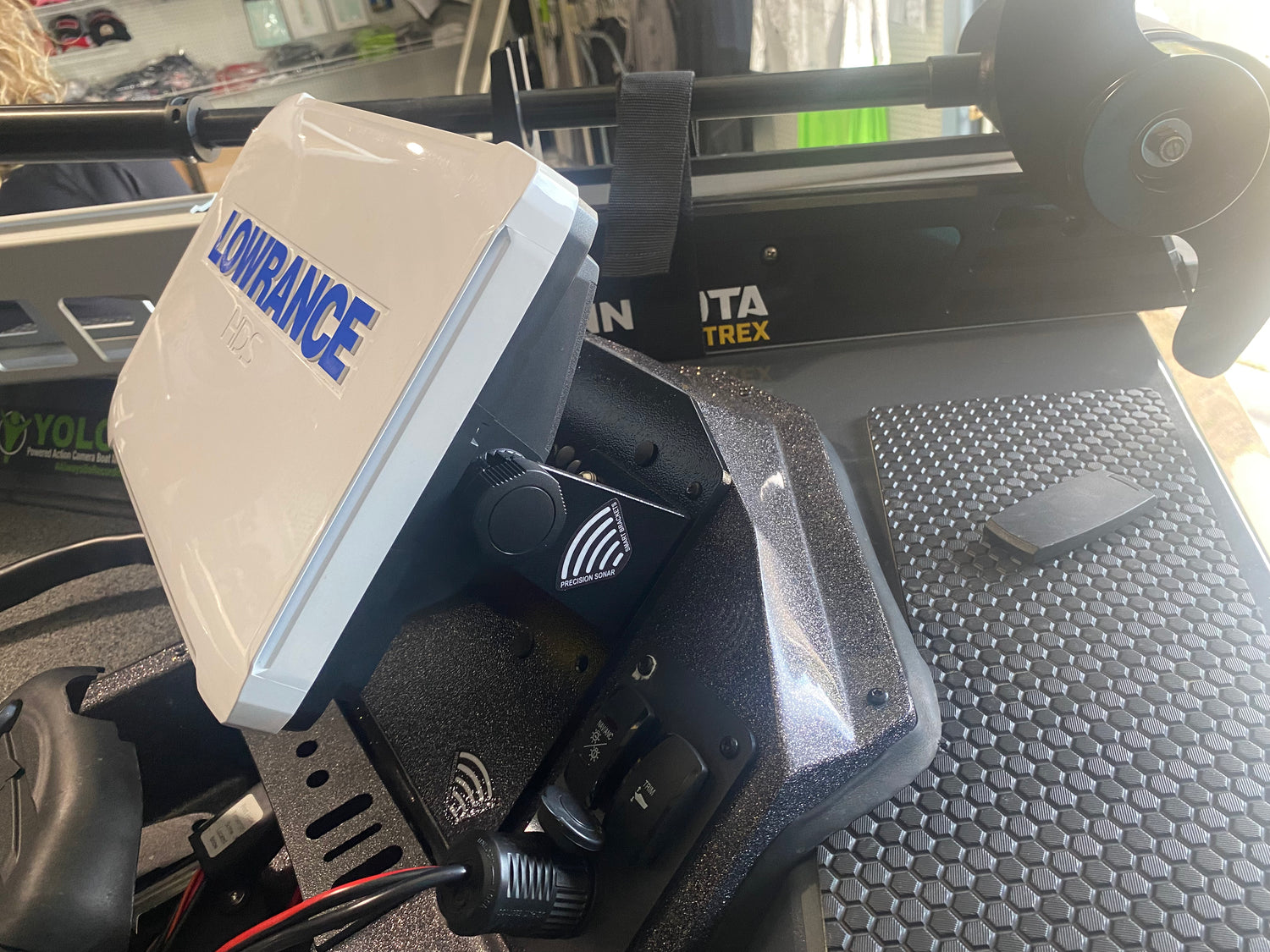 If you are using Garmin factory gimbal brackets or a PLASTIC Lowrance Gimbal Bracket on this mount instead of our Smart Brackets, you may be required to drill your own mounting holes.