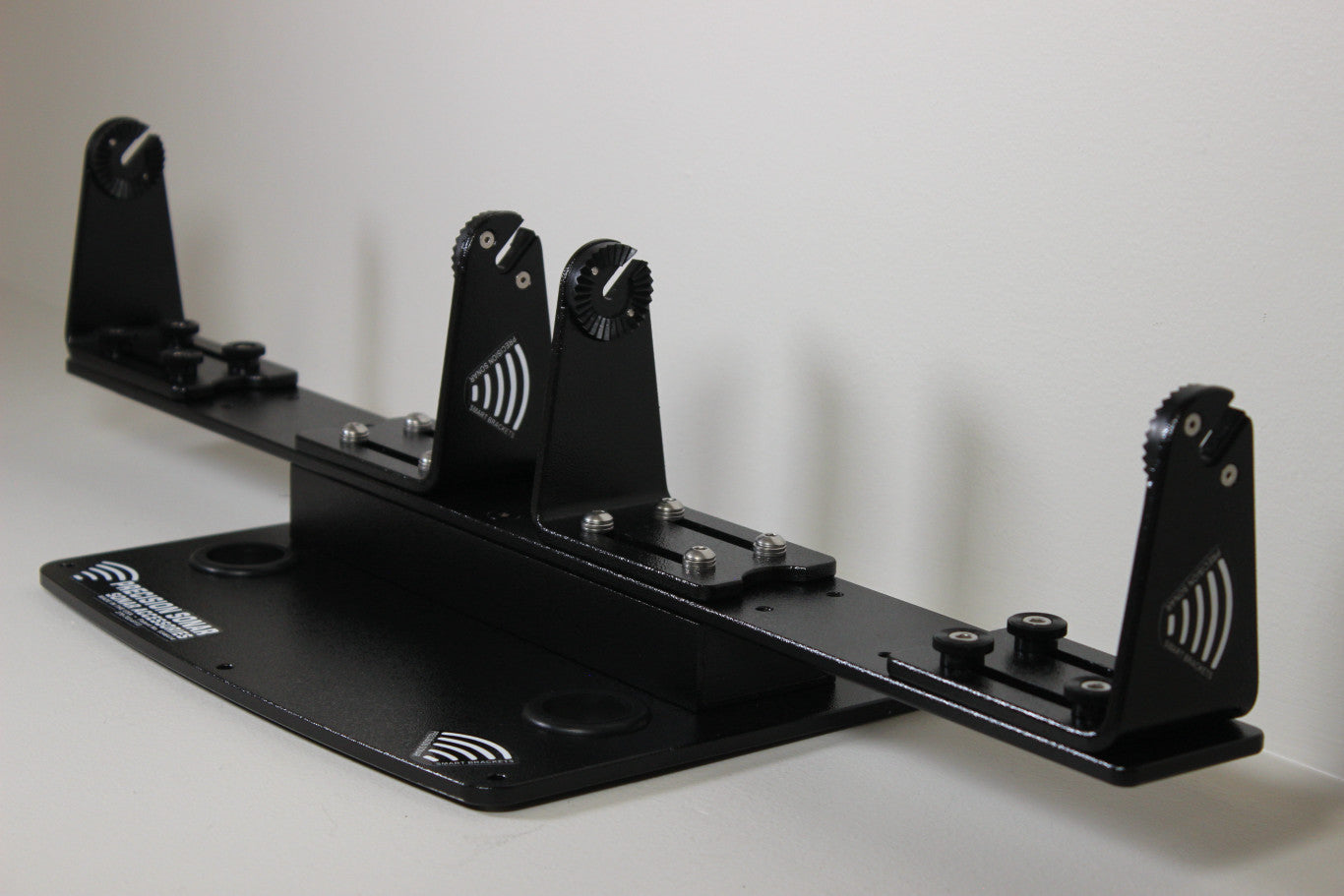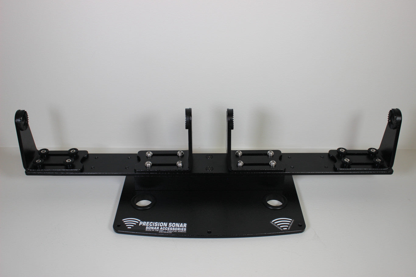 A Dual Triton Console Mounting System Plate that comes with a V-shaped spreader bar, spacer block, our Patented Smart Brackets and your choice of discs to match those units. The plate itself is quarter inch aluminum and built to be strong and stable for mounting to your boat.