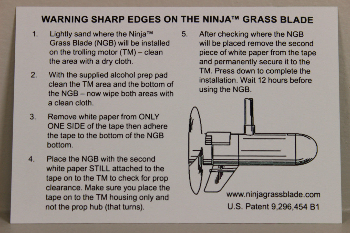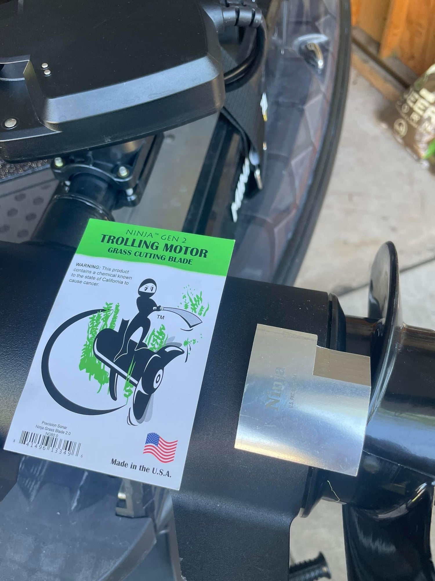 Made in the USA! The Ninja Grass Blade is a small aluminum attachment on your trolling motor that has a cutting surface. Every time the trolling motor prop picks up any grass it will run the grass across the cutting surface and chop it into small shreds to make sure your prop keeps spinning even in the thicket grass!