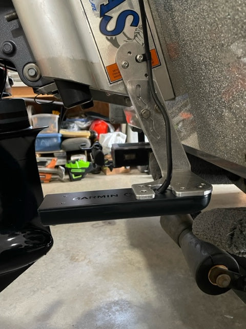 This is designed to mount your transducer on the port or starboard side of your jackplate and prevent you from needing to drill holes in your transom. The bracket has 4 different height adjustments and a slotted groove to adjust the level of your transducer based on the angle of your hull and will include an optional extension plate. We offer variants for Lowrance, Humminbird, and Garmin transducers. Made in America from 1/4" aluminum and all mounting hardware is included.
